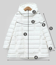 尺码 ①后中长 ②肩宽 ③胸围 ④下摆围 ⑤袖长 ⑥袖臂围 ⑦袖口围
