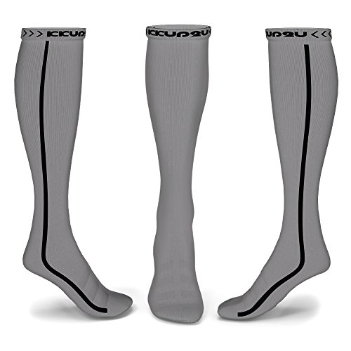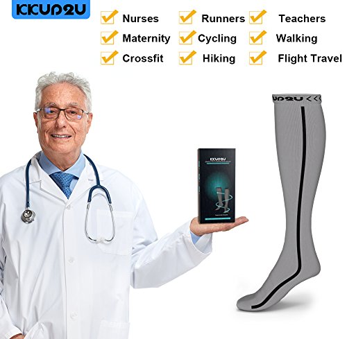 KKUP2U Compression Socks, Medical 20-30 mmHg Graduated Compression for Flight, Athletics, Travel, Nurses, Running - Boost Stamina, Circulation & Recovery -Gray Black L