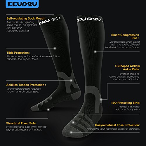KKUP2U Compression Socks, Medical 20-30 mmHg Graduated Compression for Flight, Athletics, Travel, Nurses, Running - Boost Stamina, Circulation & Recovery - Black Gray L