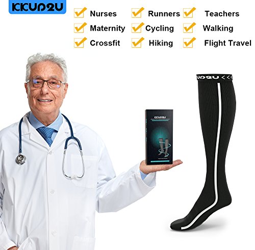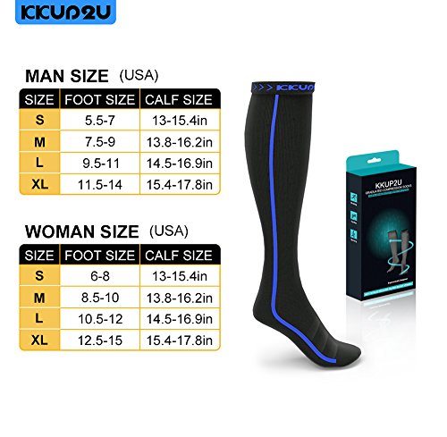 KKUP2U Compression Socks, Medical 20-30 mmHg Graduated Compression for Flight, Athletics, Travel, Nurses, Running - Boost Stamina, Circulation & Recovery -Black Blue L