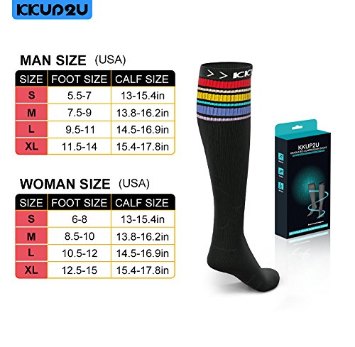 KKUP2U Compression Socks for Men & Women, Medical20-30 mmHg Graduated Compression for Flight, Maternity, Athletics, Travel, Nurses, Running - Boost Stamina, Circulation & Recovery - Rainbow L