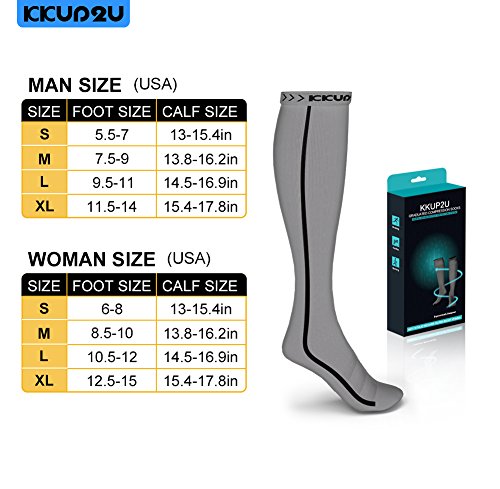 KKUP2U Compression Socks, Medical 20-30 mmHg Graduated Compression for Flight, Athletics, Travel, Nurses, Running - Boost Stamina, Circulation & Recovery -Gray Black XL