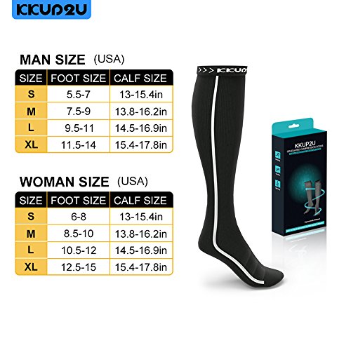 KKUP2U Compression Socks, Medical 20-30 mmHg Graduated Compression for Flight, Athletics, Travel, Nurses, Running - Boost Stamina, Circulation & Recovery - Black Gray M