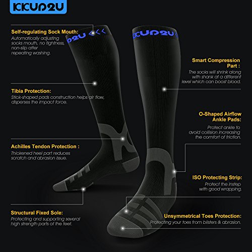 KKUP2U Compression Socks, Medical 20-30 mmHg Graduated Compression for Flight, Athletics, Travel, Nurses, Running - Boost Stamina, Circulation & Recovery -Black Blue M