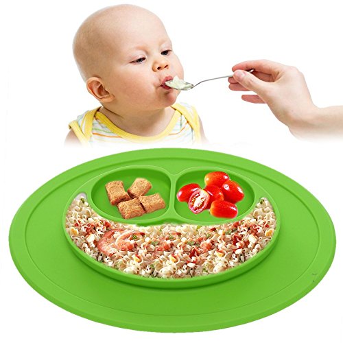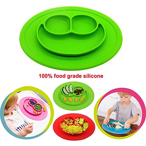 -. Feature : FDA APPROVED 100% Food-Grade Material, eco-friendly, bacteria resistant. Free of BPA - PVC Lead and phthalate. Hygienic, safe and soft non slip silicone tableware for babies and toddlers. Soft smiley, bright and smooth to touch, great for building your child's confidence throughout their early meal experiences. / DESIGNED TO FIT MOST HIGH CHAIRS- This user friendly round smiley shape placemat designed in order to fit most highchair trays (Including "Space Saver" Models). Diameter:10.6" / SEPARATE FOOD PORTION COMPARTMENTS ENCOURAGE A MEASURED HEALTHY DIET - The perfectly rounded edges allow easy access for little fingers and prevent food from getting stuck in corners. / CONVENIENCE TO USE Anti-oil, water resistant Easy to clean by hand or by dishwasher.After cleaned and stored in a clean and dry place away from direct sunlight. Temperature range: -104 ~ 446 (℉), plus microwave ,freezer and oven friendly! / PORTABLE, VERSATILE AND EASILY FITS INTO YOUR BAG - Perfect for taking to kindergarten,your friends house and days out at the park. Relax knowing that your baby is eating balanced and healthy, and take a smile wherever you go!