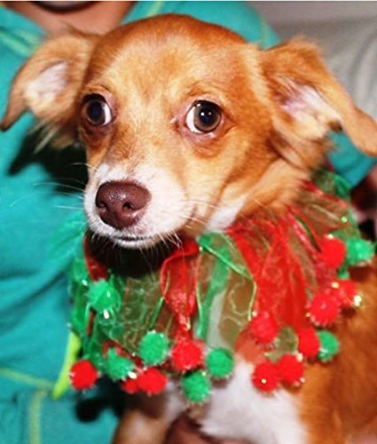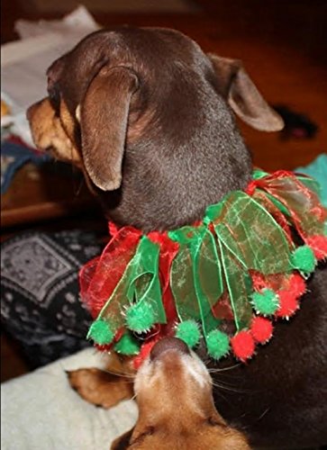 Studio : BBPET Publisher : BBPET Binding : Misc. Product Description This wonderful elastic dog scrunches is made of 100% polyester and decorated with small balls at the tips.Total two collars in one package. Your dog can wear them in some special places, parties, holidays, and other memorial moments.Red and green colors very suitable for Christmas photos. The minimum length of collar is 7.8",the elastic collar design makes it easy to fit your dogs'neck, and quick to dress up.Plastic berakaway buckle is lightweight and durable.Although it is adjustable,your dog will feel bad if it is too tight,so please measure your pet's neck girth before buying.Most cat and puppy dog,or the dog which have thin neck can wear the collar comfortable.
