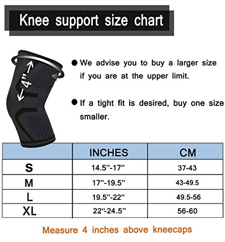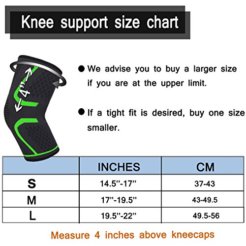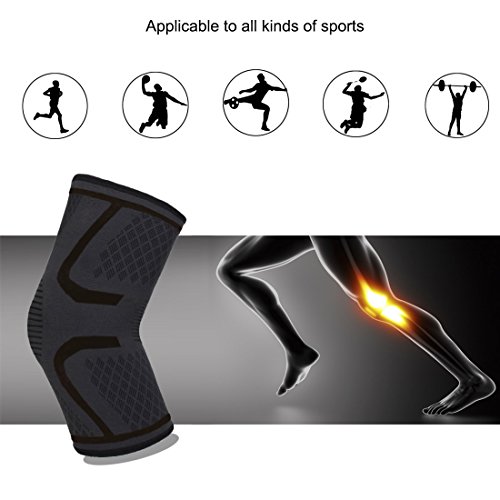 -. Feature : BEST QUALITY: High tenacity yarn of good air permeability characteristics make the knee has excellent comfort and does not affect the movement of limbs, frivolous breathable, sweat quickly, best knee support / ANTI-SLIP: Three dotted lines silicone design and material of product has stable compression, effectively prevent slip / APPLICABLE SPORTS:Suitable for the movement of any leg joints have pressure, like running, basketball, soccer, football, volleyball, cycling, jumping, hiking, tennis, weightlifting, powerlifting and much more / FUNCTION:Reduce muscle tremors, prevent muscle soreness,to enhance the action of the knee joint,and aid in recovery arthritis, tendonitis / CONSULT OUR SIZE CHART:Knee sleeve is suitable for men, women and kids,to choose the best knee brace