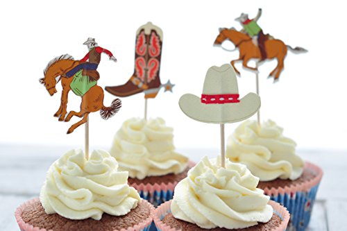 BeBeFun Cupcake Decorative Toppers Cowboys Shape Cupcake Decorating Tools for Party Supplies 24 Pieces in Pack.(Cowboys)