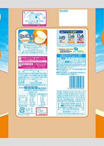 原材料:油脂加工品(砂糖、植物油脂、乳糖、全粉乳)、うるち米(米国産)、でん粉、植物油脂、砂糖、食塩、植物性 乳酸菌末(殺菌)、貝カルシウム、乳化剤(大豆由来)、香料、酸化防止剤(ローズマリー抽出物、ビタミンE)
