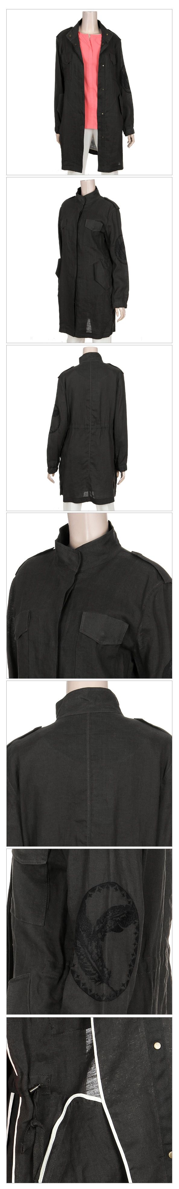어깨의 견장과 소매라인의 자수 디테일을 포인트로 준 린넨 자켓입니다.