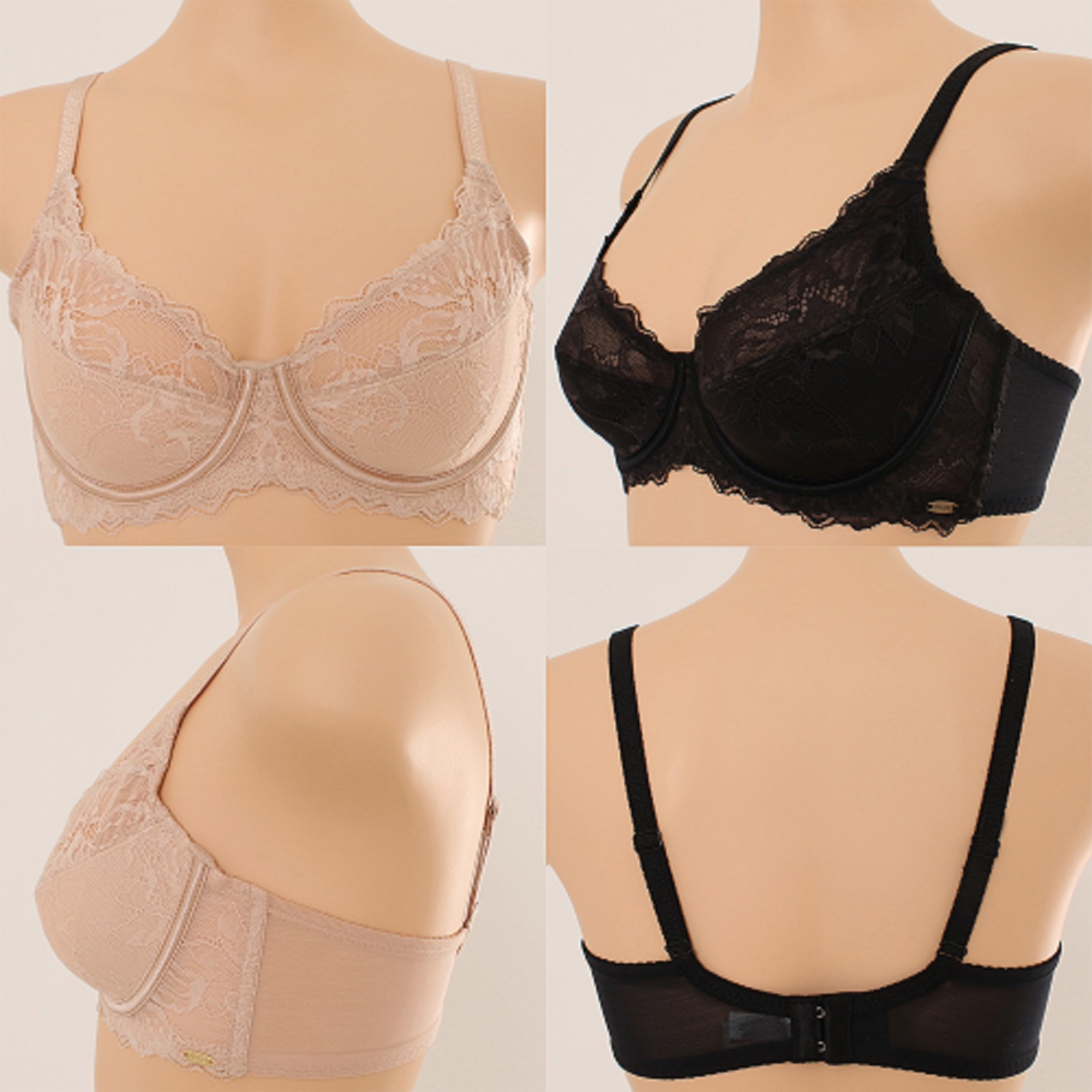 스트랍 레이스가 안정감있게 잡아주며 하컵을 면싱으로 처리 하여 사계절 쾌적하게 착용가능합니다.