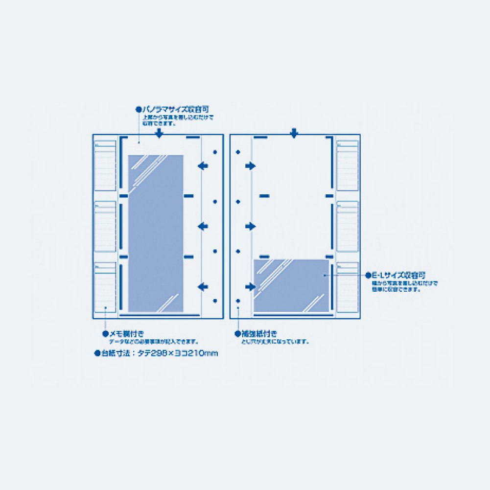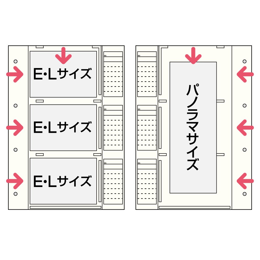 ● The number of photos accommodated is E, L size 6 sheets for both front and back, 2 sheets for panorama.