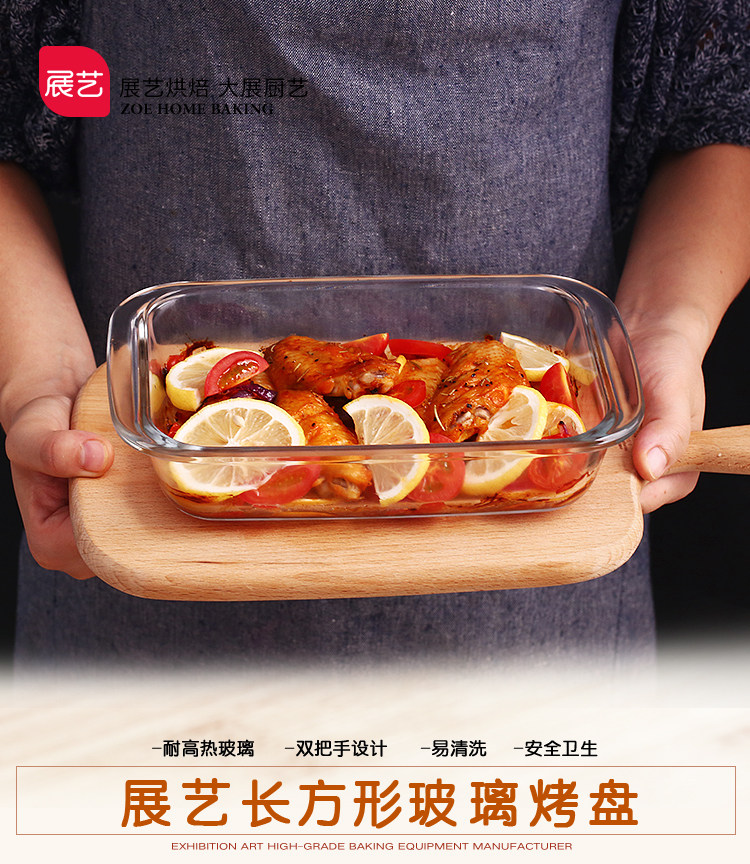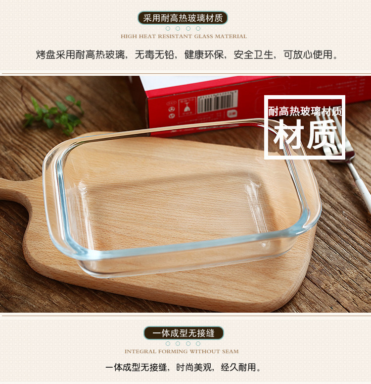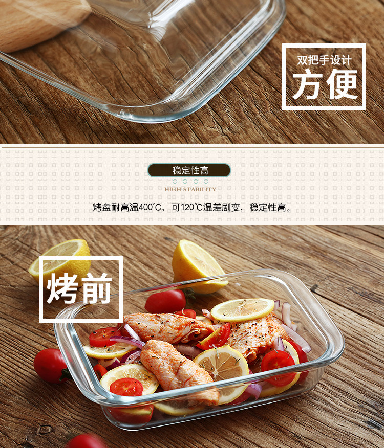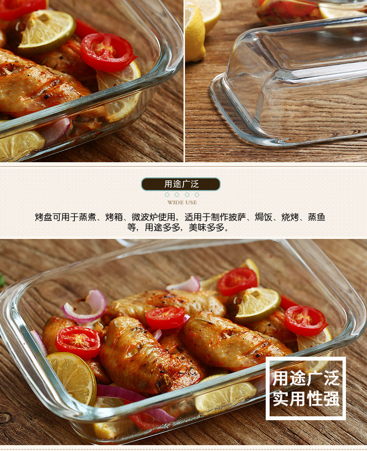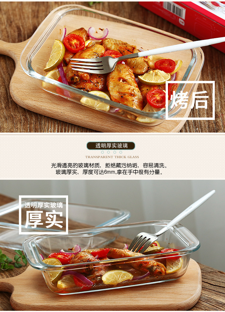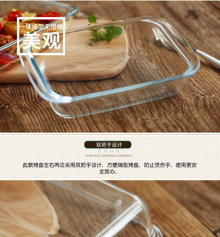 方形耐热玻璃烤盘 焗饭盘微波炉烤箱用沙拉玻璃盘diy烘焙模具