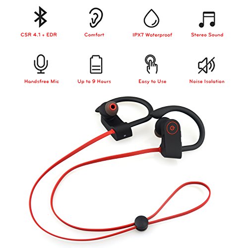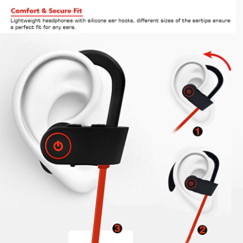 ✓ COMFORT & SECURE FIT DESIGN with IPX7 WATERPROOF RATING - With Ergonomic design and silicone ear hooks, these cordless sports earphones are secure behind your ears and rest comfortably in the ear canal. Three sizes (S/M/L) of custom comfortable silicone earbuds ensure a comfortable and secure fit for everyone. Advanced IPX7 nano-coating keeps the headphones protected against sweat and moisture.