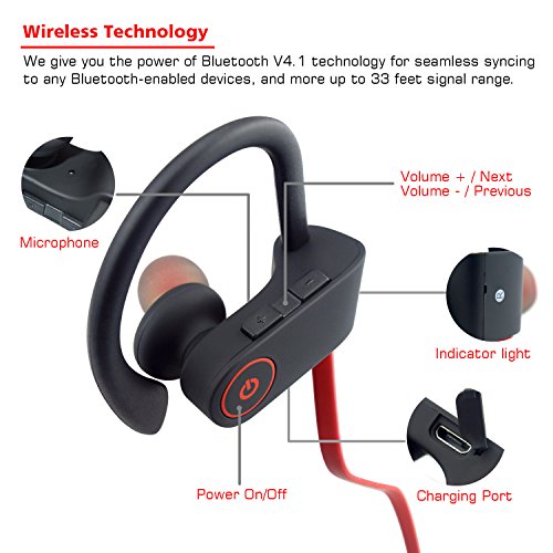 ✓ PREMIUM HD AUDIO PERFORMANCE - OH Wireless Sports Bluetooth Headphones BH01 are equipped with Bluetooth 4.1 + EDR APT-X audio decode technology, offering you perfect stereo sound. CVC 6.0 noise Isolation technology reduces outside noises, enable clearer music and microphone sound.