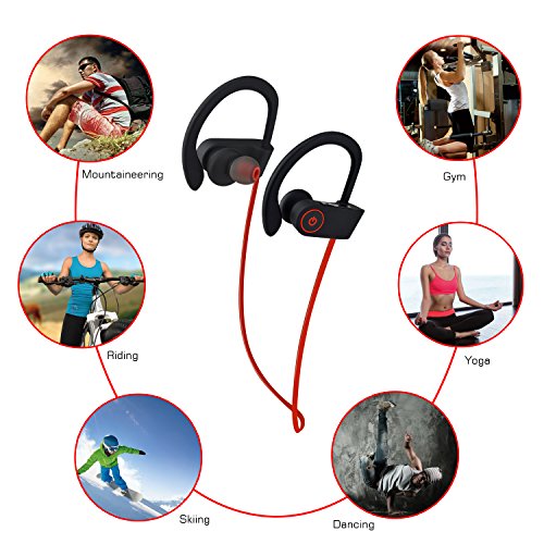 ✓ BORN for SPORT FANS - Premium soft smooth silicone gel surface helps sweat proof. Neckband design prevents troublesome wires from tangling during your workout. Behind-In-Ear design makes sure the earbuds stay in place, you don't need to worry about it falling out of your ears. Also, it's lightweight and perfectly matches with any of your favorite outfits. It's great for gym, running, climbing, dancing, jogging, cycling, driving, camping, hiking or any other indoor or outdoor sport activity.