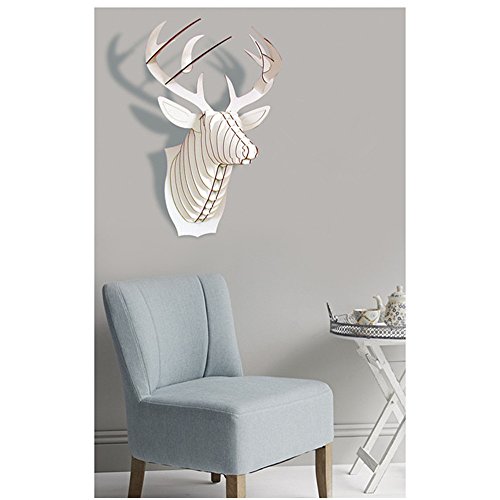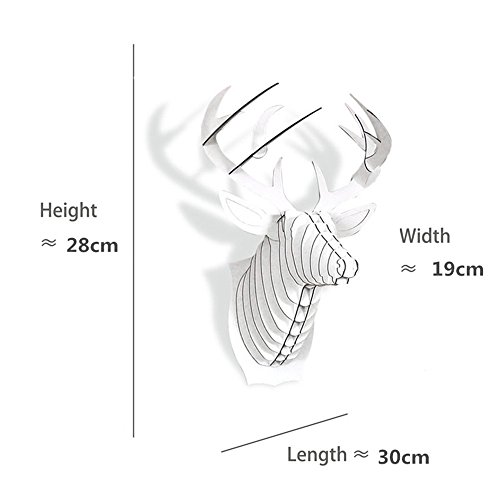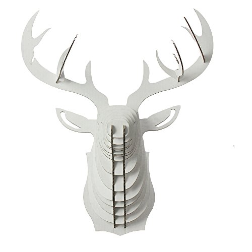 Paper Maker Cardboard 3D Deer Head Wall Decoration Art Animal Head Wall Hanging Decor (Small, white)