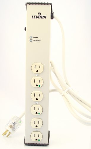 Leviton 5300-HTS 120 Volt, 15 Amp, Surge Protected, 6-Outlet-HG Tamper-Resistant Strip, Continuous Duty, 6-Ft, Beige