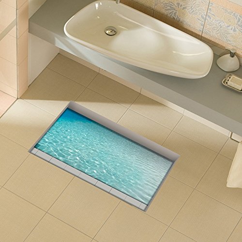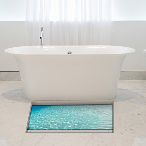 H4S Royal Blue Ocean Sea 3D Peel and Stick Waterproof Non Slip Thin PVC Bathroom Floor Stickers Shower Bath Mats Rugs Stickers Door Mat Sticker Art Decor Wall Decals for Kids, 22.83" X 35.43"