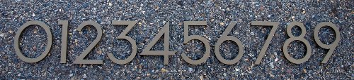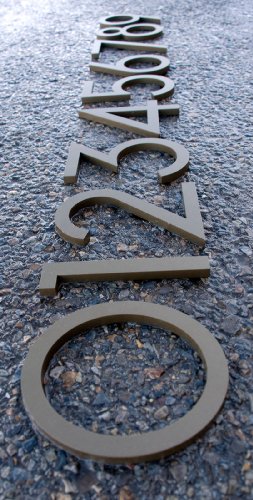 -. Feature : Modern House Numbers / Modern font / 3/8" Architectural Grade Recycled Aluminum / Size 6" Tall / Bronze powder coating to with stand extreme conditions