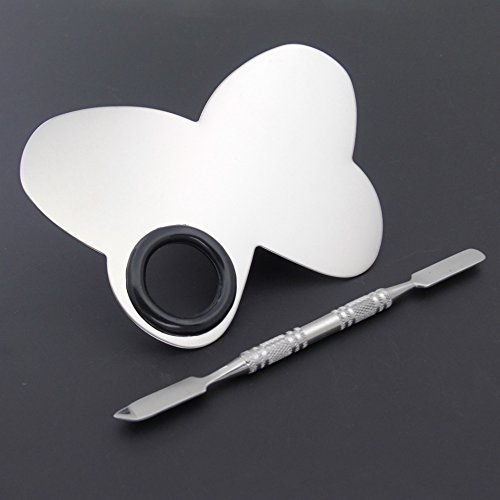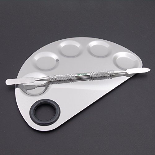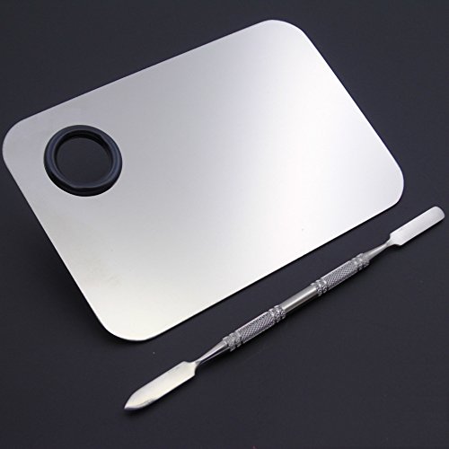 Silver-white stainless steel texture, smooth touch, let the creative color wantonly sway.Bright and clean, easy to clean, suitable for a variety of color cosmetics use,such as foundations,eyeshadow and lipstick etc.Stainless steel spatula, tough and smooth, unique shape, rich texture, easy coloring, suitable for professional and non-professionals.Size of the Palette(LxW) : 6.15 by 3.93 Inches; Spatula:Length about 6.3 Inches.There is a hole for finger, quite convenient to hold it. And the size fit for your makeup bag and handbag, you can carry it with you while travelling.