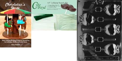 Cybrtrayd 45StK50GRBk-F001 Apple Lolly Chocolate Candy Mold with Chocolatier's Bundle, Includes 50 Lollipop Sticks, 50 Cello Bags, 50 Green Twist Ties and Chocolatier's Guide