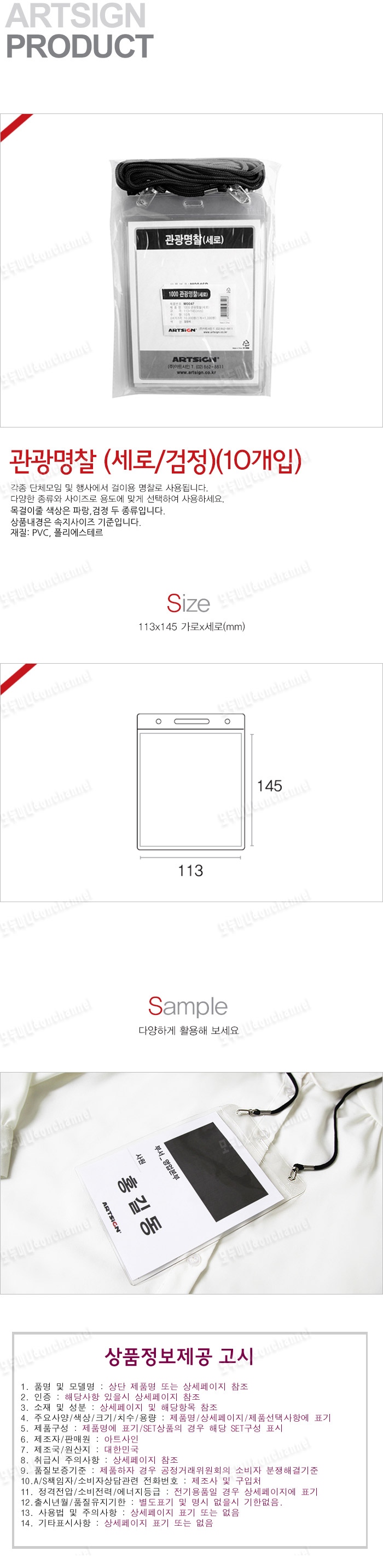 - 품명 및 모델명관광명찰(세로/검정/113x145mm/10개입)