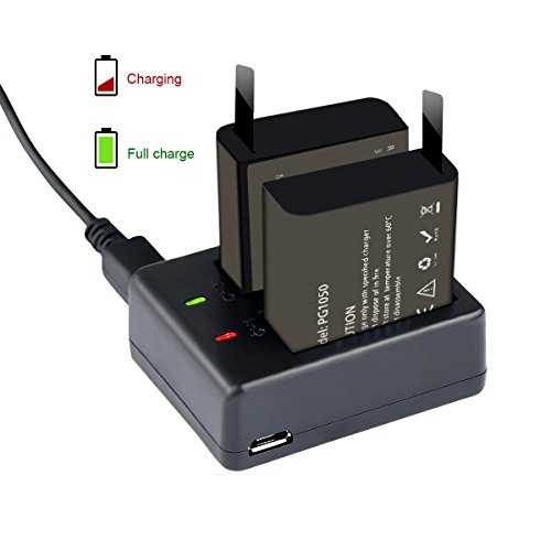 PG1050 3 x 1050mAh Rechargeable Action Camera 4K Battery with USB Dual Charger for Underwater Camera AKASO EK7000/DBPOWER/APEMAN/EKEN H9/Vtin/Cymas/campark/SOOCOO/Victure/Vikeepro/Canany/Wimius/ODRVM/