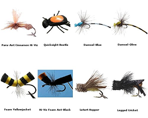 -. Feature : 8 Select Panfish Patterns / Innovative and professionally tied flies from Holly Fly Company / Hi Viz Foam Ant - Black size 16, Para Ant Cinnamon Hi Viz size 16, Quicksight Beetle size 14 / Foam Yellowjacket size 12, Letort Hopper size 14, / Damsel Blue size 10, Damsel Olive size 10, Legged Cricket size 12 and comes in a plastic fly box