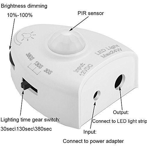 - √ MOTION SENSOR LIGHTING TIME GEAR SWITCH WITH DIMMER & TIMER ADJUSTABLE: led motion sensor switch with auto shut-off timer can be set from 30 seconds / 130 seconds / 380 seconds. Continue Trigger and System can keep the light on and automatically turn off as our scheduled time after leaving