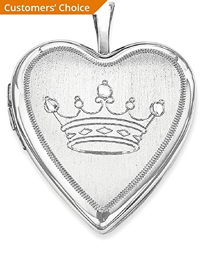 ICECARATS DESIGNER JEWELRY 925 STERLING SILVER 20MM CROWN HEART PHOTO PENDANT CHARM LOCKET CHAIN NECKLACE THAT HOLDS PICTURES