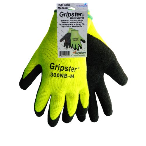 Studio : Global Glove Publisher : Global Glove Binding : Misc. Product Description Global Glove rubber glove. Excellent industrial and mechanical glove for all types of material handling. Perfect for any application that requires high visibility and a great grip, such as highway construction. Snug fit. 10 gauge knitwrist polycotton neon safety yellow shell for comfort. Black etched rubber palm for extra grip. Medium size. 0