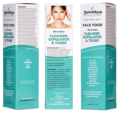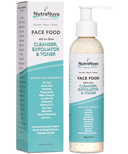 NutraNuva Face Food – Cleanser, Exfoliator & Toner All-in-One – Clear Skin Natural Facial Wash, Tea Tree & Clay for Gentle Clean Anti Aging, Not Drying /...