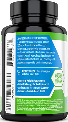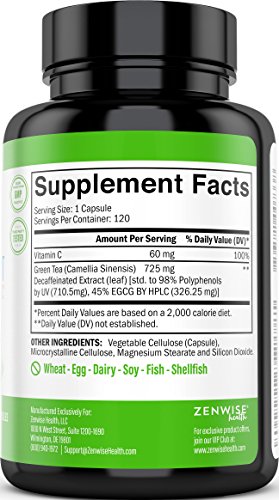 -. Binding : Health and Beauty -. Brand : Zenwise Health -. IsAdultProduct : 0 -. Label : Zenwise Health LLC -. Manufacturer : Zenwise Health LLC -. ProductGroup : Health and Beauty -. ProductTypeName : HEALTH_PERSONAL_CARE -. Publisher : Zenwise Health LLC -. Studio : Zenwise Health LLC -. Title : Green Tea Extract Supplement with EGCG for Weight Loss - Decaffeinated Vegetarian Pills for Metabolism Boost and Heart Health with Vitamin C - Natural Source of Energy- 120 Vcaps
