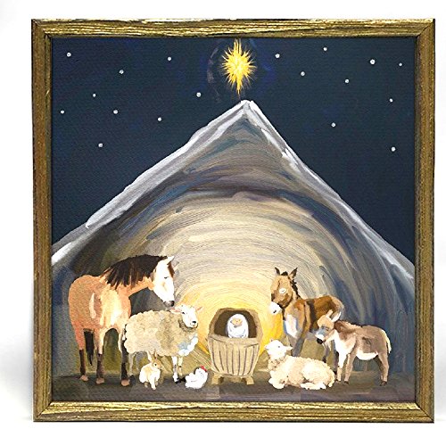 Nativity Manger Embellished Mini Framed Canvas Wall Art, 6" x 6".