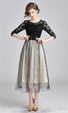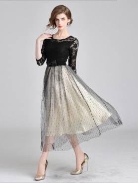 L バスト:94cm ウエスト:76cm 肩幅:36cm 袖丈:47cm 着丈:127cm