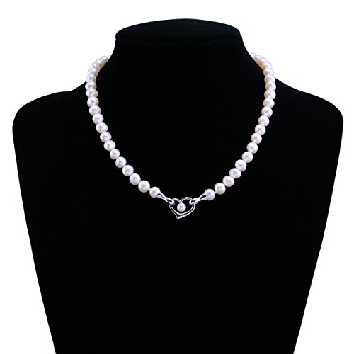 This amazing freshwater cultured pearl necklace compliment women of all ages, offering glamour at party or any occasion. Each and every woman deserves to feel even more special. Each and every women deserves this elegant freshwater cultured pearl necklace. 0.7x0.55 inch (1.8*1.4cm) heart-shaped, 18 inch (46cm) total length, including the heart pendant, weighing in at 44.5 grams, including 4.1 grams metal part.