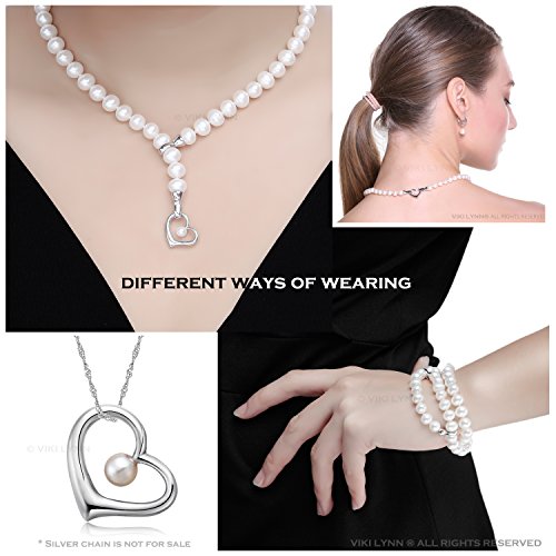 VIKI LYNN original design: You can wear this stunning cultured pearl heart necklace five different ways. Please refer to the pictures to get fashionable ideas on how to wear this elegant pearl necklace. AAA 7-8 mm (Max width) off-round freshwater cultured pearl, +925 sterling silver, 18K gold plated heart, accessory parts which could be separated into a single pendant (the clasps on both sides could be opened.), within whose inner side inlaid, a 5-6mm freshwater cultured pearl.