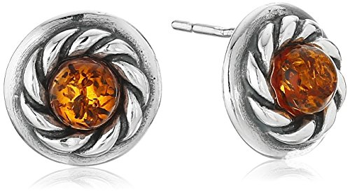 Honey Amber Sterling Silver Round Stud Earrings