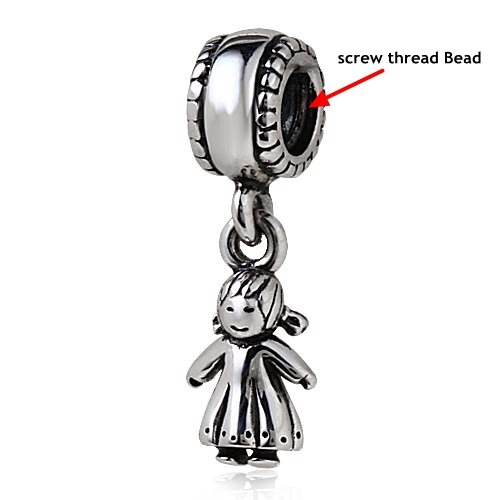Luckybeads Little Girl/Daughter Charms 925 Sterling Silver Screw Thread Bead fit for DIY Charms Bracelets (girl)