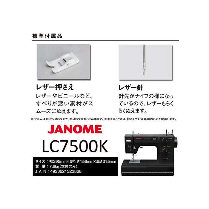 원본상품명: ジャノメ janome パワフル電動ミシン LC7500K レザ 蛇の目