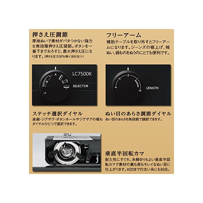 JANOME 자노메 janome 파워풀 전동 미싱 LC7500K 레더 대응 굵은 고리 모양
