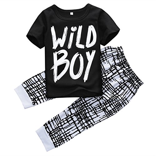 -. Title : Baby Boys Short Sleeve "Wild Boy" T-shirt and Grid Pants Outfit