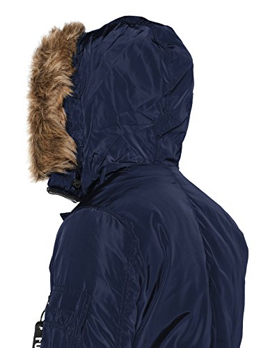 Das Kunstfell an der Kapuze, welche den Kragen bildet, kann abgenommen werden. Insgesamt ist die Outdoorjacke mit vier Taschen ausgestattet, die ausreichend Platz fur deine wichtigen Dinge bieten.