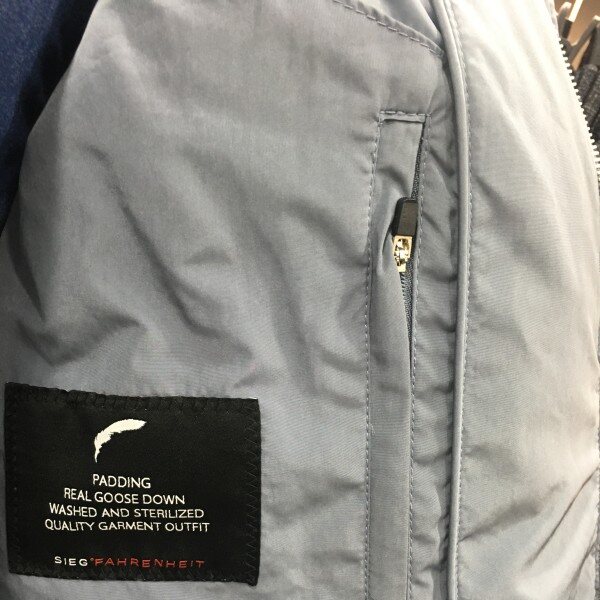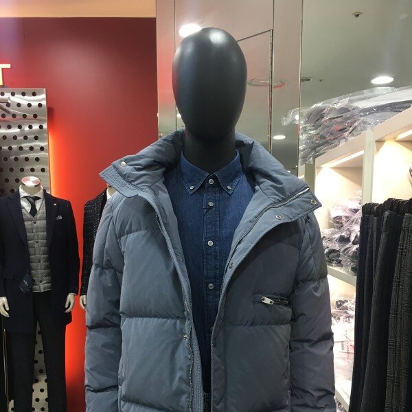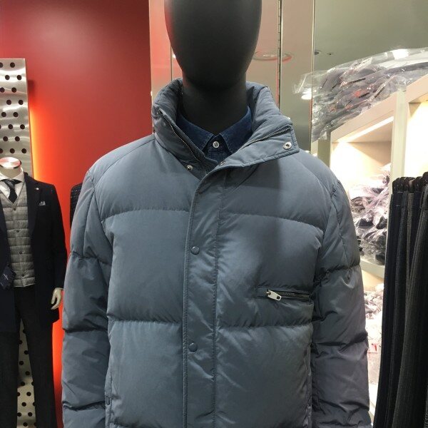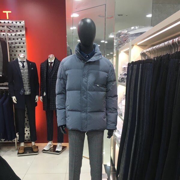 파우더리 한 소재의 짧은 기장의 여유있는 실루엣의 구스다운점퍼입니다.