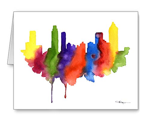 -. Feature : "Atlanta Skyline" abstract artwork by watercolor artist DJ Rogers. / Note card size is 4.25 x 5.5 inches / Matching white envelopes included. / Note cards are blank inside for your personal message. / Suitable for framing.