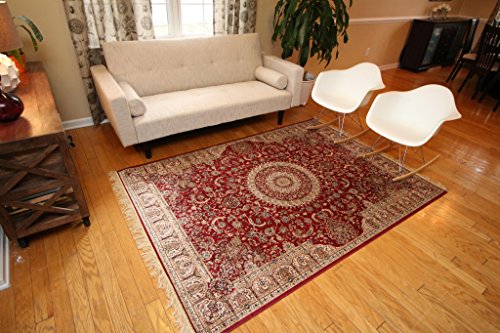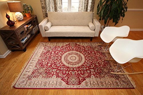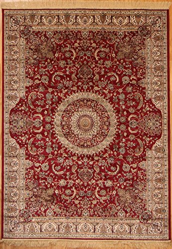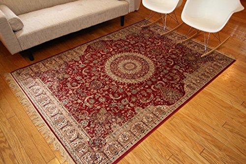 - Title : Garnet Red New Silk Traditional Isphan Area Rugs Ultra Low Pile 5'2x7'6 160x230cm