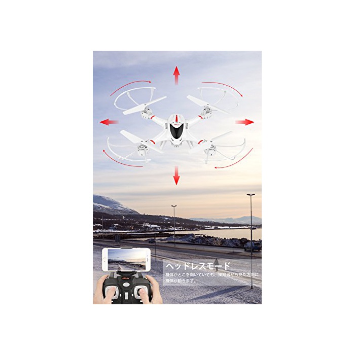 【헤드 레스 모드 기능&6축 쟈이로】헤드 레스 모드 기능 첨부 오고, 기체가 어디를 향해 있어도조종자에게서 본 방향으로 기체가 움직입니다.6축 쟈이로 탑재,상승,하강,전진,후진,좌돌리기,우돌리기,3Dflip 등의 비행 동작,초심자에서도 간단하게 조작으로 옵니다.