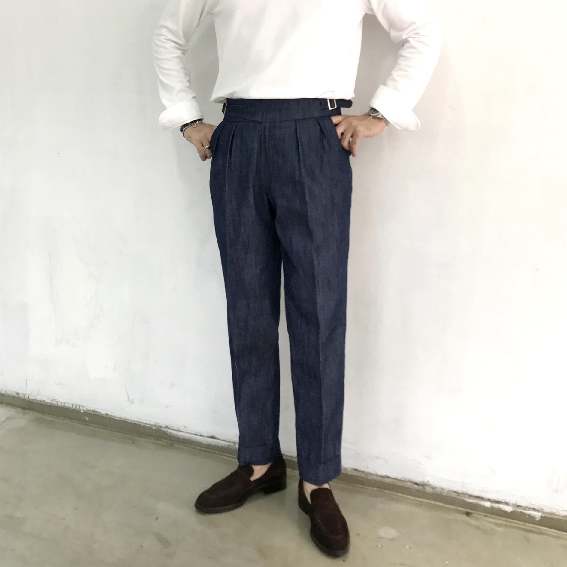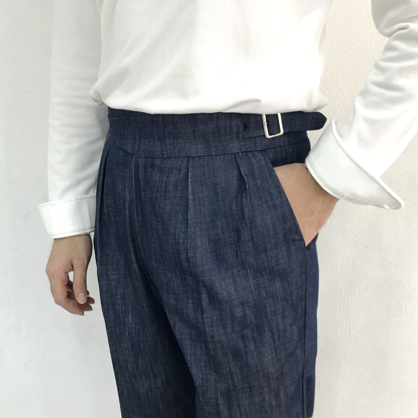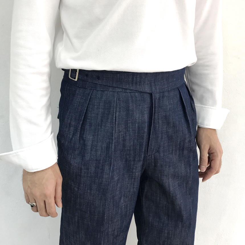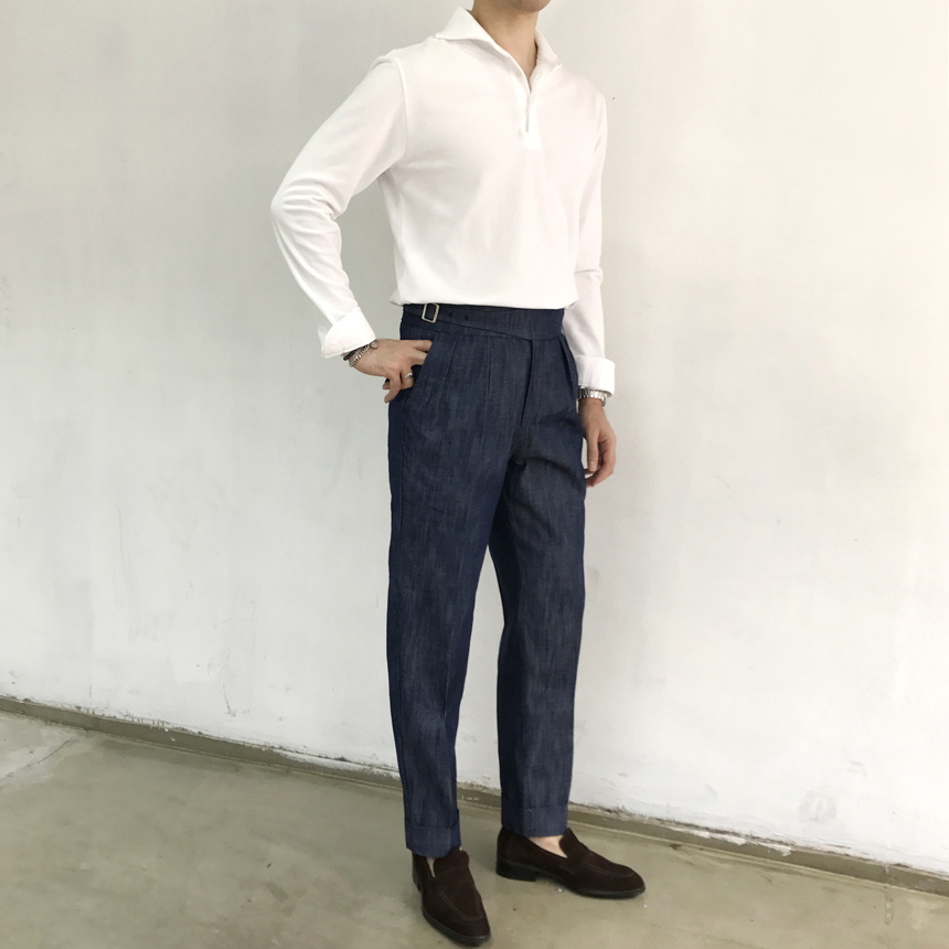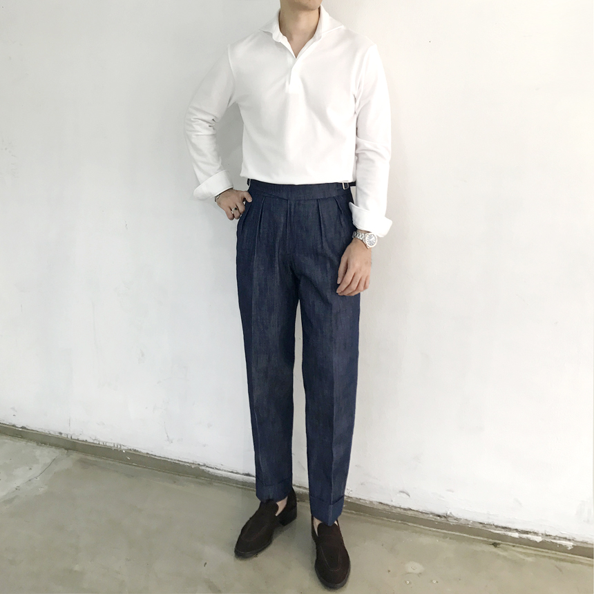 Denim Gurka Pants Pants Man Wrinkle lapel