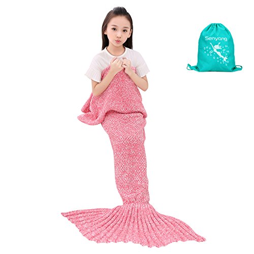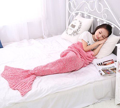 Mermaid Blanket - SENYANG Mermaid Tail Blanket Handmade Crochet Sofa Blankets All Seasons Sleeping Bags Best Choice for Girls Gift Christmas Gift (Kid Thick Pink)